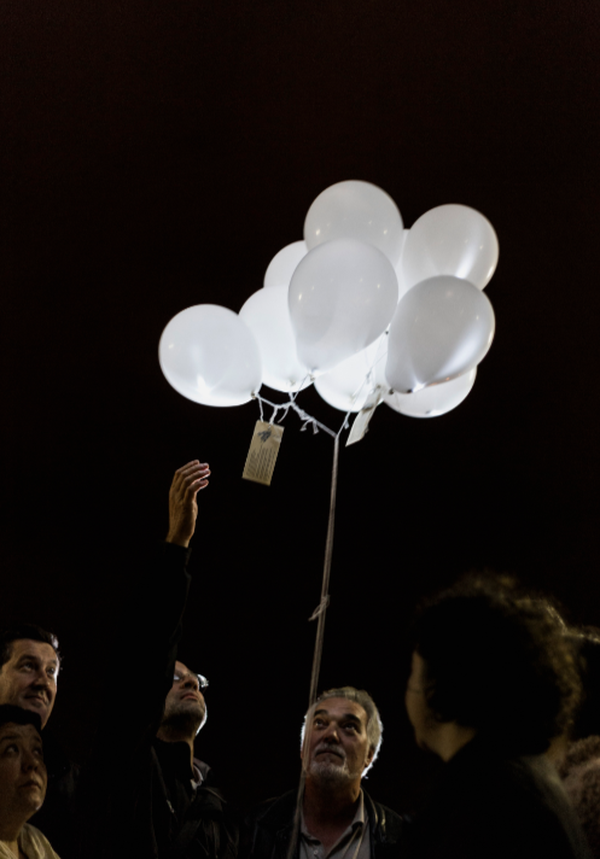 Cada racimo cargado con un mensaje escrito de puño y letra por vecinas y una semilla recogida en las frondas del barrio.